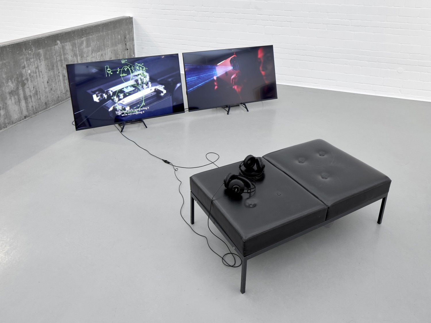 links: Rachel O’Reilly, INFRACTIONS, 2019, Videoinstallation, geteilter Bildschirm, Farbe und Ton, 60 Minuten