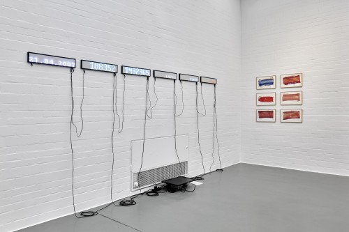 Pepa Ivanova, links: Picturing Earth's Light (PEL), 2020–2021, Maßgefertigte LED-Bildschirme, jeweils 12,5 x 67 cm