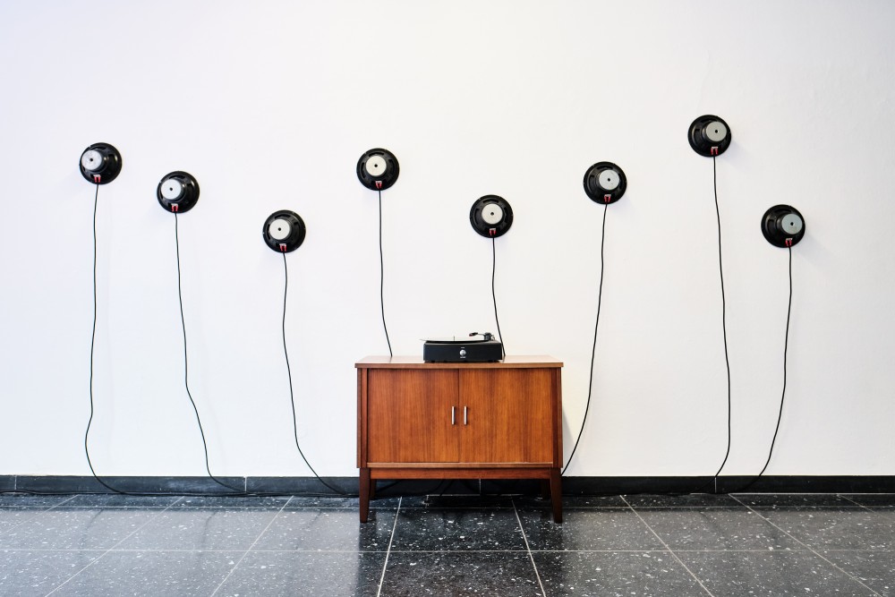 Klangistallation; 10 Lautsprecher, Schallplattenspieler, LP "Illegal Loopz #1"