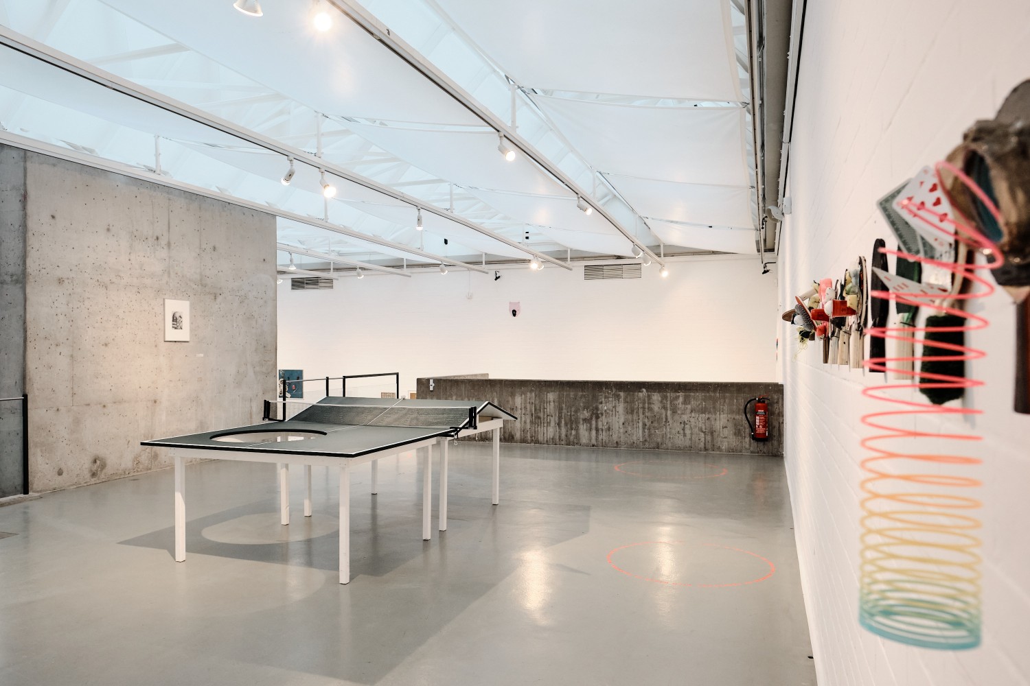 „Tritt in den Kreis und dreh dich, während du leise eine deiner Lieblingsmelodien pfeifst“ – hierzu fordert ein Werk des Künstlers Eric Andersen auf. Beim FLUX-Ping-Pong kann man sich ein wildes Tischtennismatch liefern. Anschließend lassen sich historische Filmaufnahmen aus der Frühzeit von Fluxus entdecken.