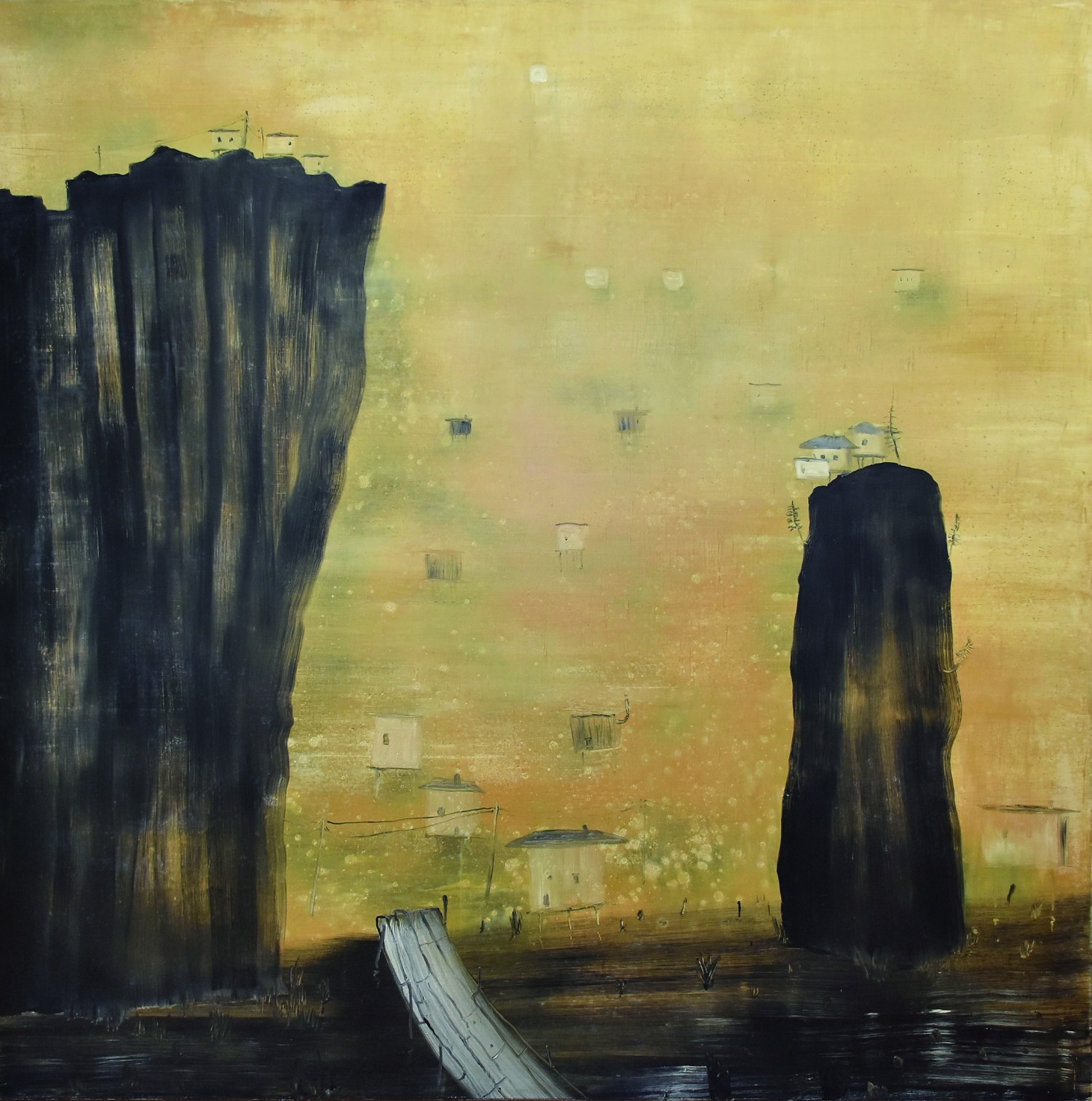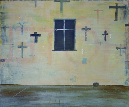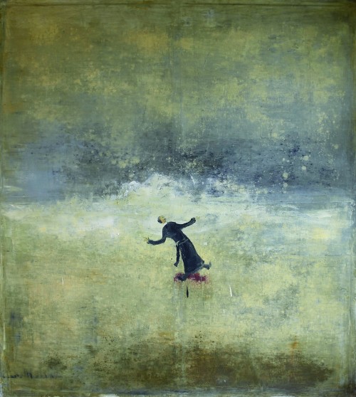 Seine Mittel sind die durch den Keilrahmen vorgegebenen Strukturen der Leinwand. Von rostigen Beimischungen herrührende Grundtöne der Farbe und der feine Strich des Pinsels geben den künstlerischen Takt in Bildern voller Hintersinn, Melancholie und Humor vor.