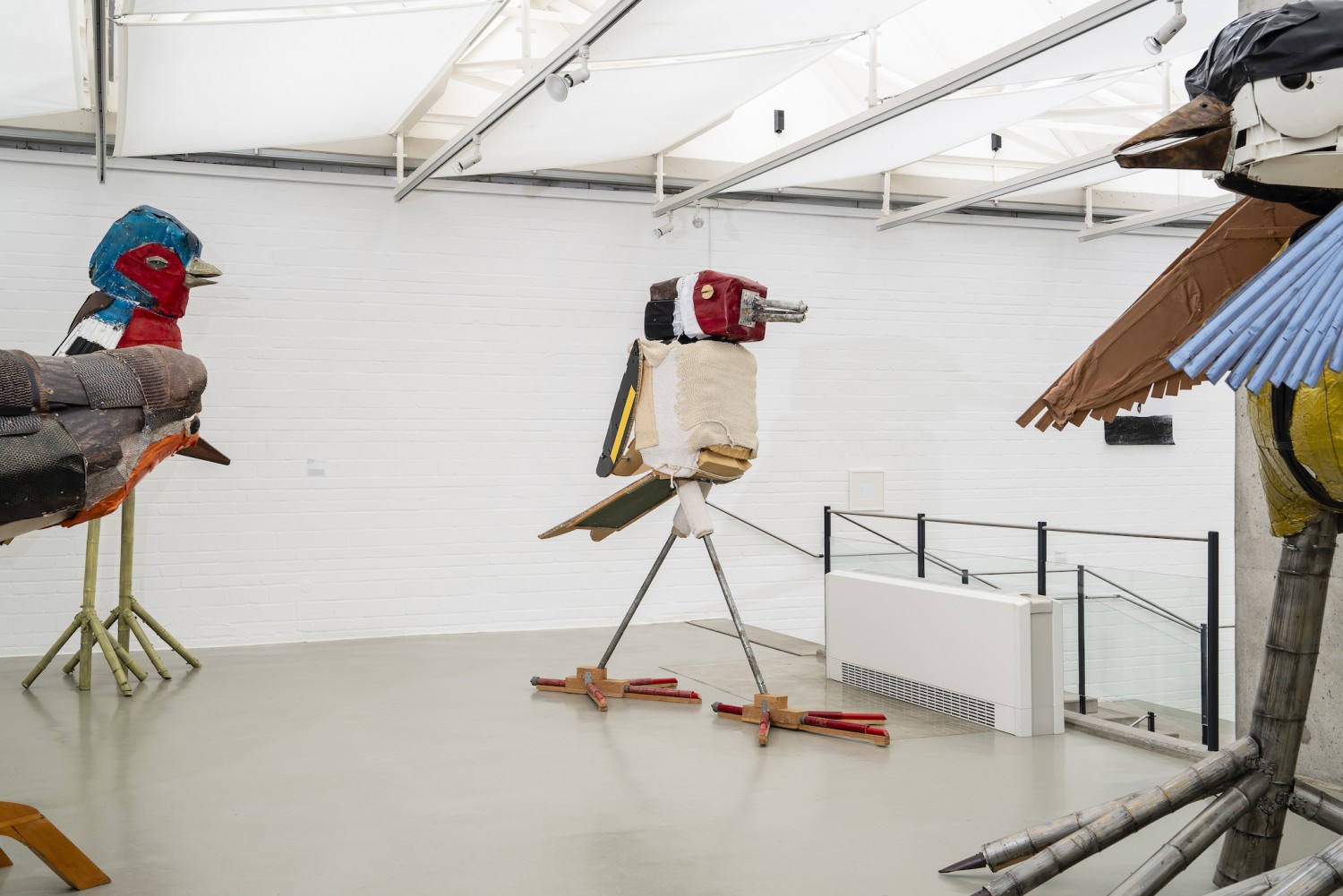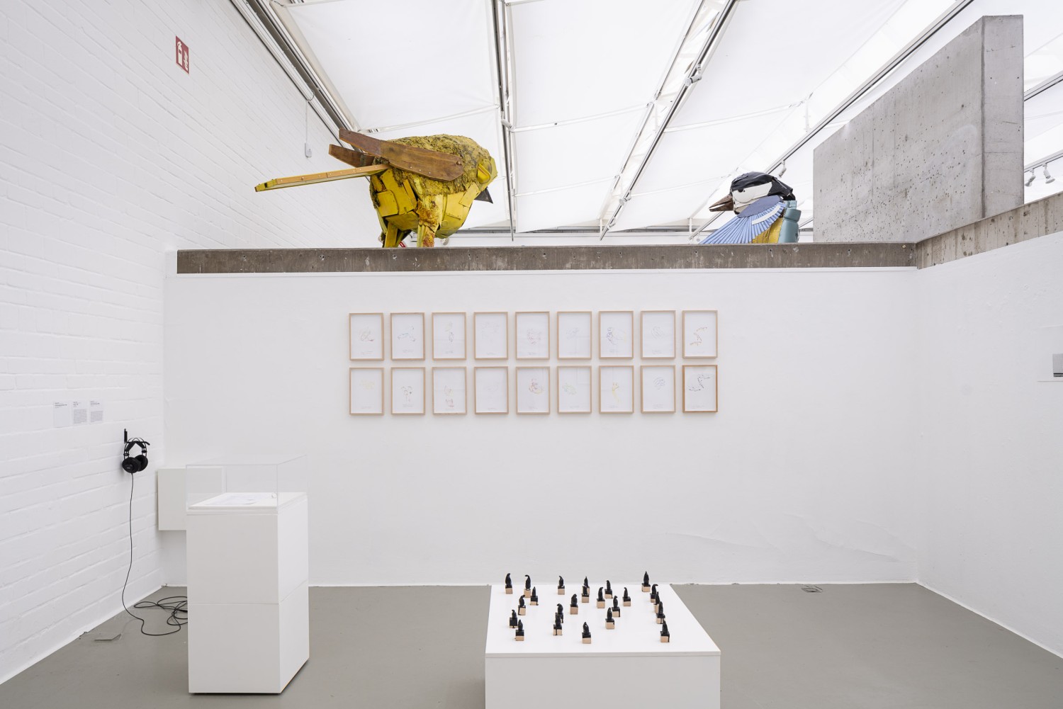 The exhibition CHIRPING. ART FROM A BIRD’S-EYE VIEW is dedicated to a range of encounters between birds and humans. It shows artistic perspectives from painting, graphics, sculpture, photography, video, music and performance in works that go far beyond a naturalistic depiction of the creatures. The exhibition deals with the human dream of flying, communication between humans and animals, the threat posed to birds by humankind, birdsong, hybrid beings and extinct species.