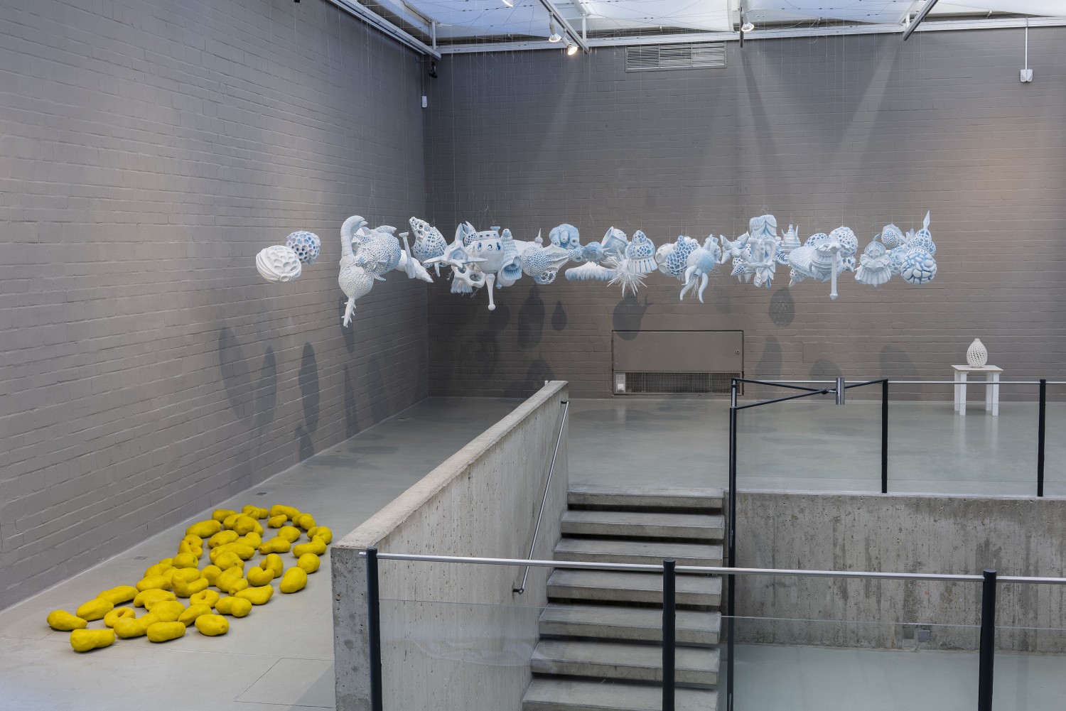 Alle Werke der Ausstellung KOMM, NIMM MICH, die den Lebensraum Wattenmeer, die mächtige Kraft des Wassers, die Künstlichkeit der Trennung von Wasser und Land sowie den stetig ansteigenden Meeresspiegel thematisieren, können ab sofort unkompliziert entliehen werden – darunter große Skulpturen mikroskopisch kleiner Strahlentierchen; fragile Wachsobjekte; Glas-Wasser-Skulpturen, die den Tidenhub verbildlichen; eine zentnerschwere Aluminiumplastik in Wolkenform; Installationen und kleinere Kunststoffobjekte.