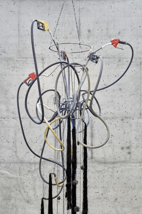 Außeninstallation zur Ausstellung FOSSILE ENERGIE, FRAGILE ZUKUNFT