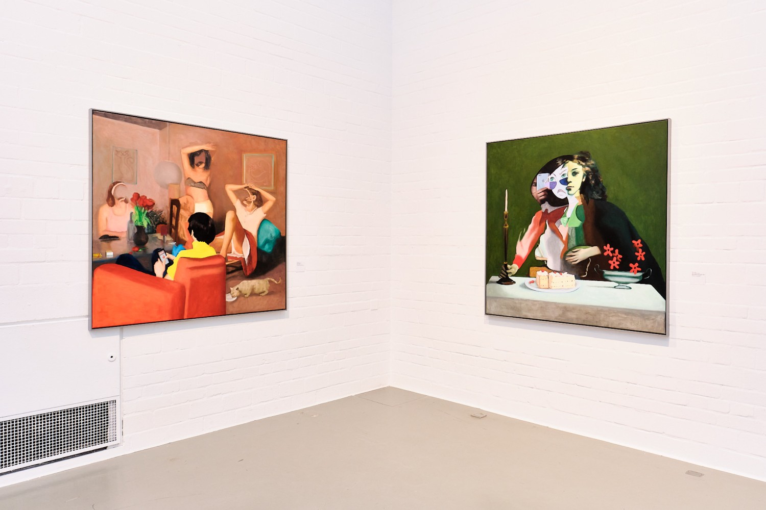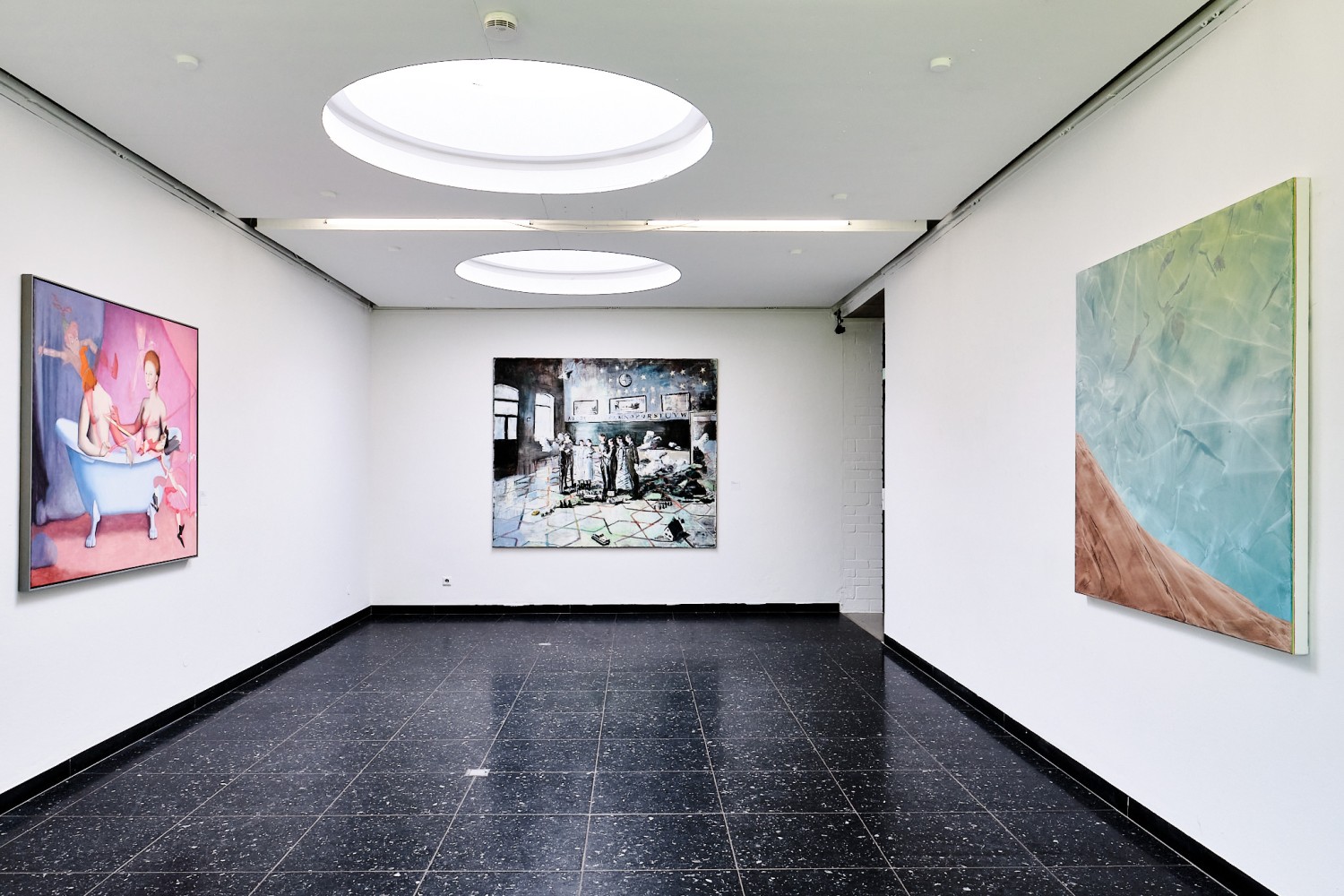Jede der sechs Positionen bringt individuelle Aspekte und Themenschwerpunkte ein: Landschaft, Architektur, Figuration (Akt, Porträt, Gruppenbild) – zum Teil vor surrealistisch anmutenden Szenerien. Auch dabei wird deutlich, dass Maler*innen nicht nur Neues erfinden und eigene Bildsprachen und -welten etablieren, sondern frei auf Bildtraditionen zurückgreifen.