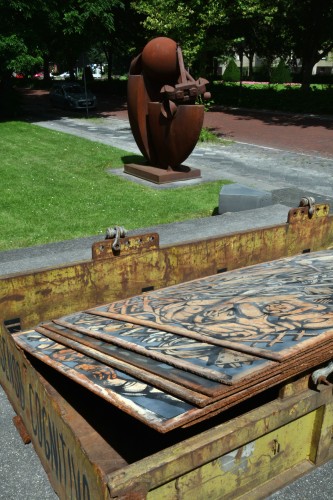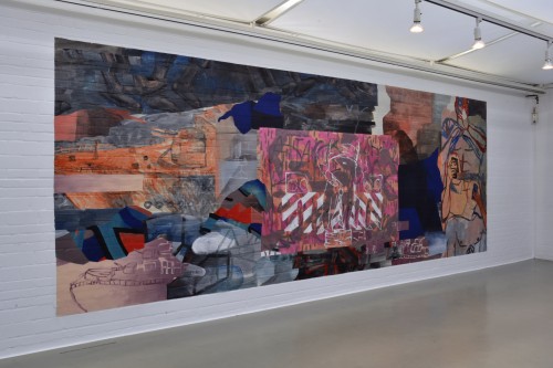 Pappmaschee, Siebdrucke, ca. 4 x 3 m