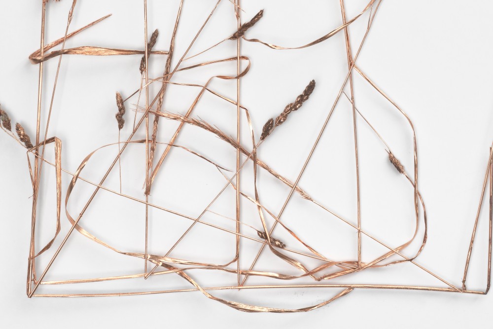 Gras galvanisiert mit Kupfer, Unikat, 80 x 49 x 4 cm