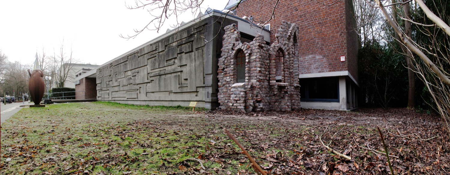 Clemens Botho Goldbach, geb. 1979 in Köln, setzt gefundene Materialien aus der Natur oder der Stadtarchitektur als Grundstoff seiner räumlichen „Bilder“ ein. Mal schöpft der Bildhauer aus dem Fundus der umliegenden Region und hat damit schon manchen weißen Museumsraum in eine bildhafte Waldlandschaft versetzt. Mal begibt er sich in den Außenraum des Museums und arbeitet dort mit historischen Baustoffen, die von abgebrochenen Gebäuden stammen. Seit September 2010 schmiegt sich etwa eine mittelalterliche Apsis mit gotischem Spitzbogenfenster an einen Bau des ehemaligen Auswärtigen Amtes in Bonn. Architektonische Elemente transformieren somit heutige Gebäude in eine romantische Szenerie und weisen auf eine mögliche Vorgeschichte des Ortes hin. Die Künstlichkeit der Installation macht der Bildhauer durch das konstruktive Montage-Prinzip sichtbar; auf der anderen Seite verblüfft die Echtheit des gemauerten Bauwerks, das ein gebautes Bild einer „echten“ Architektur entstehen lässt und im Betrachter vage Assoziationen an pittoreske Landschaftsgemälde des 19. Jahrhunderts auslöst.