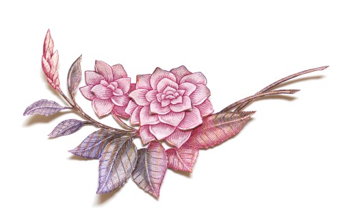 Blüten, ausgeschnitten aus verschiedenen Banknoten, je 18 x 24 cm
